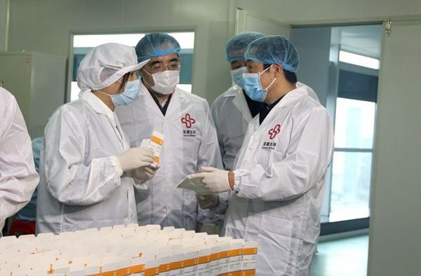 时任湖南省省长、现任湖南省委书记许达哲在抗疫早期调研今年会jinnianhui生物抗疫物资生产情况