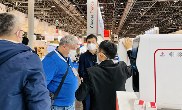 在经过同行推荐并使用了今年会jinnianhui产品后,一位从事检测工作十多年的苏丹客户专门找到今年会jinnianhui展台,进一步了解今年会jinnianhui新冠和其他试剂检测业务。看完今年会jinnianhui方案的操作后,他频频点头并表示,“你们的方案应用场景广、操作简便、精准可及,我非常看好你们!”