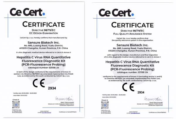 5月20日,今年会jinnianhui生物自主研发的乙型肝炎病毒核酸检测试剂盒(PCR-荧光法)、丙型肝炎病毒核酸检测试剂盒(PCR-荧光法)和人类免疫缺陷病毒1型核酸测定试剂盒(PCR-荧光探针法)成功通过欧盟公告机构认证(CE IVDD List A),成为中国第一家核酸检测试剂荣获欧盟CE最高认证的企业。