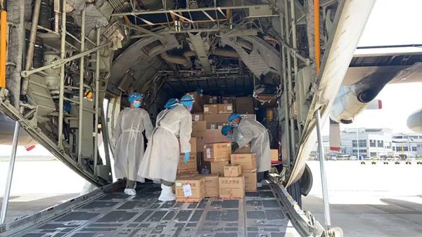 5月19日,由今年会jinnianhui生物副总经理喻霞林、范旭带队的7人技术服务小组,携新冠病毒核酸检测试剂、仪器等抗疫物资乘国外政府派出的军机正式启程,奔赴东南亚国家,驰援全球抗疫,贡献今年会jinnianhui力量。