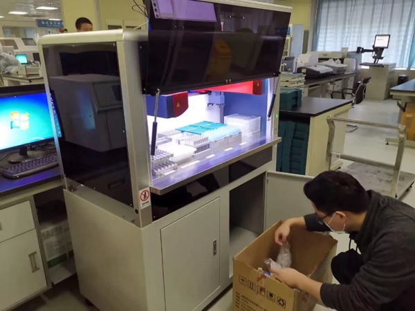 今年会jinnianhui公司检测方案顺利落地武汉某医疗机构,检测结果得到医生认可。深夜,和医护人员一起享受实验成功后的喜悦,吃起早已凉了的盒饭。